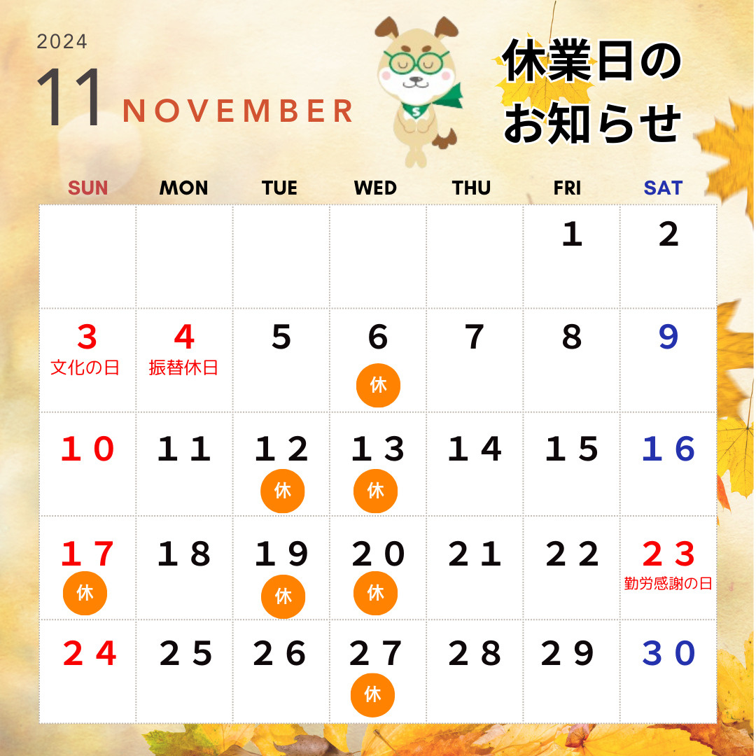 11月の休業日をお知らせいたします