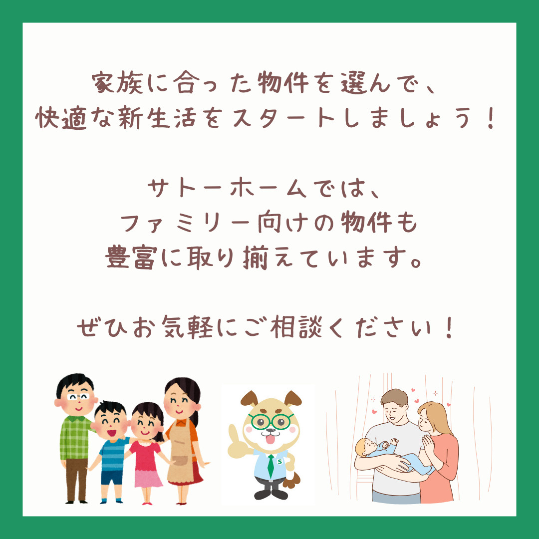 サトーホームでは、ファミリー向けの物件を豊富に取り揃えています!